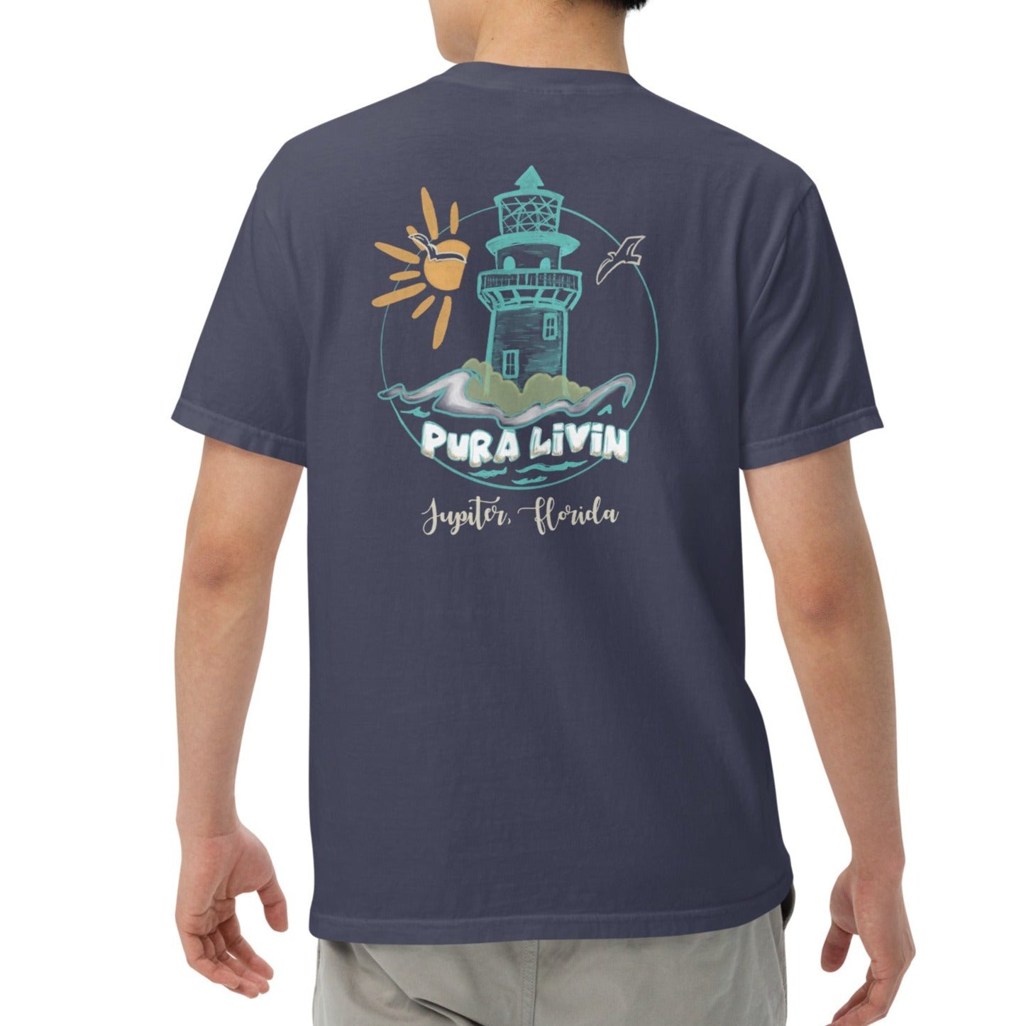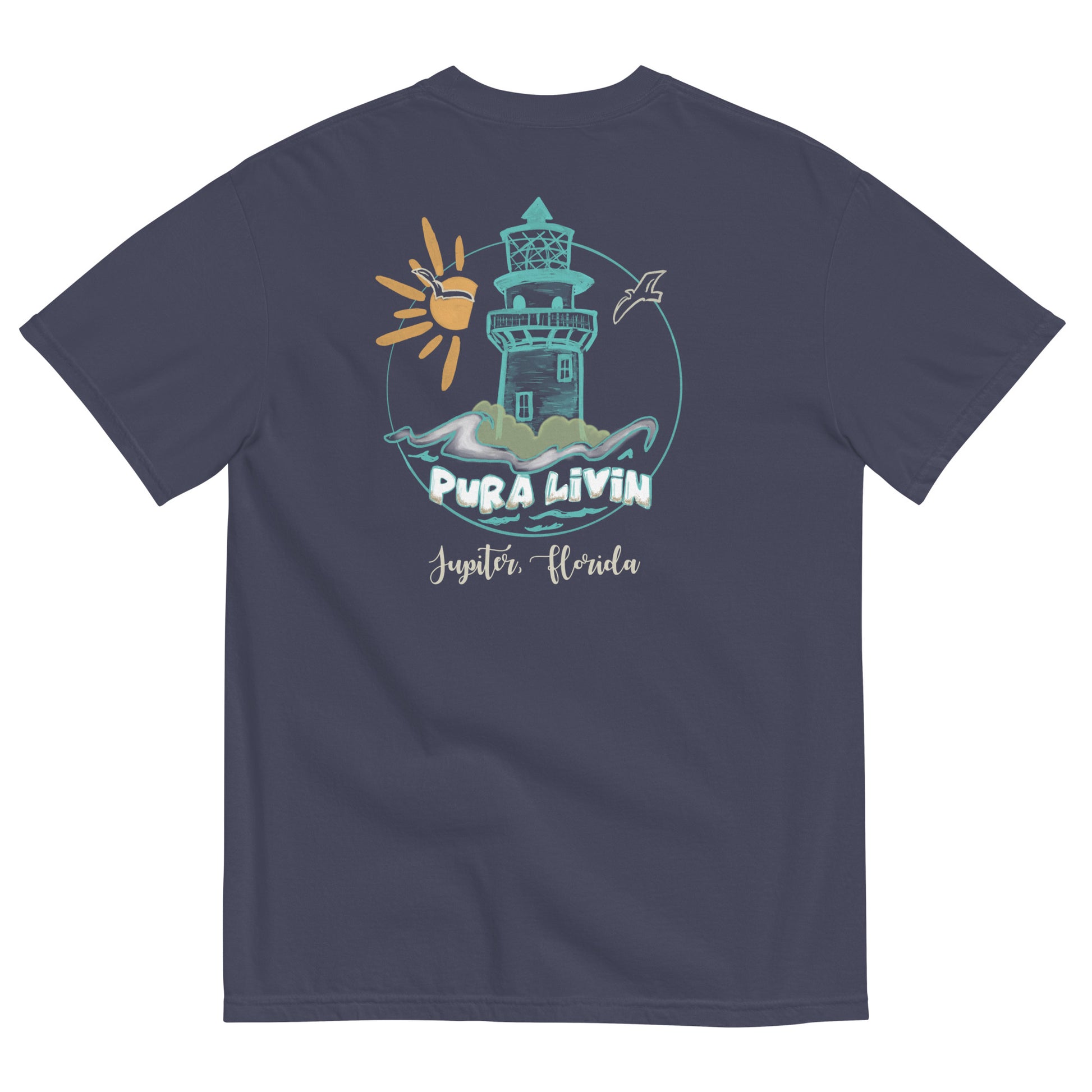 Featuring our original Jupiter Lighthouse design, it showcases the beauty of coastal living and evokes a sense of wonder. Whether you're strolling along the shores or embracing the serenity of the sea, this shirt is your perfect companion.