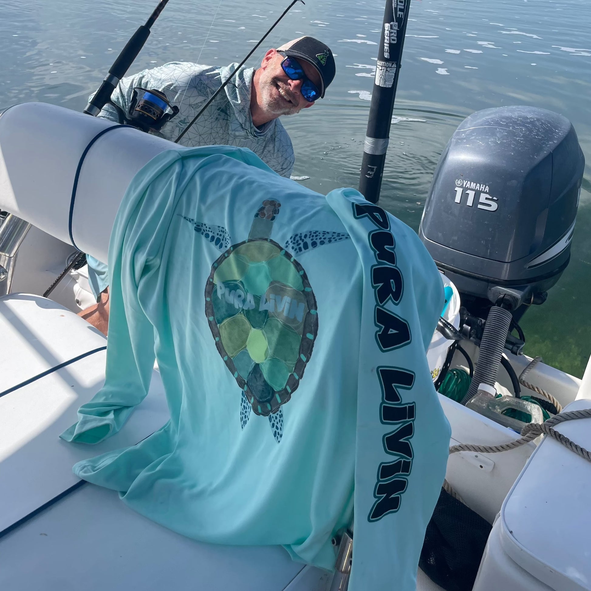 Perfect for fishing, boating, beach days, biking, hiking, gym workouts, or simply hanging out. This V-neck performance shirt offers style and functionality for year-round wear, both on and off the water. 🌿🌞🌊 #PuraLivin #SeaTurtleShirt #AdventureAwaits