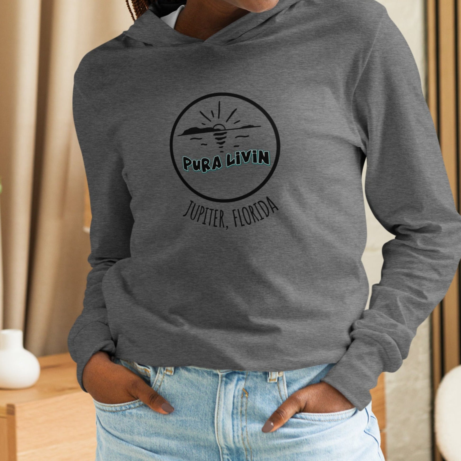 Embrace comfort and intention with our unisex long sleeve cotton hoodie. Perfect for layering, this lightweight piece is crafted from soft, breathable fabric to keep you cozy without the bulk. Whether you're on the go or relaxing, our Pura Livin signature logo hoodie serves as a reminder to live your best life, every day. Size up if you want a very oversized look.