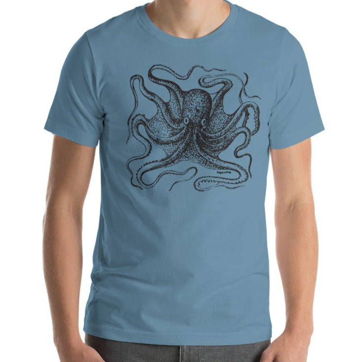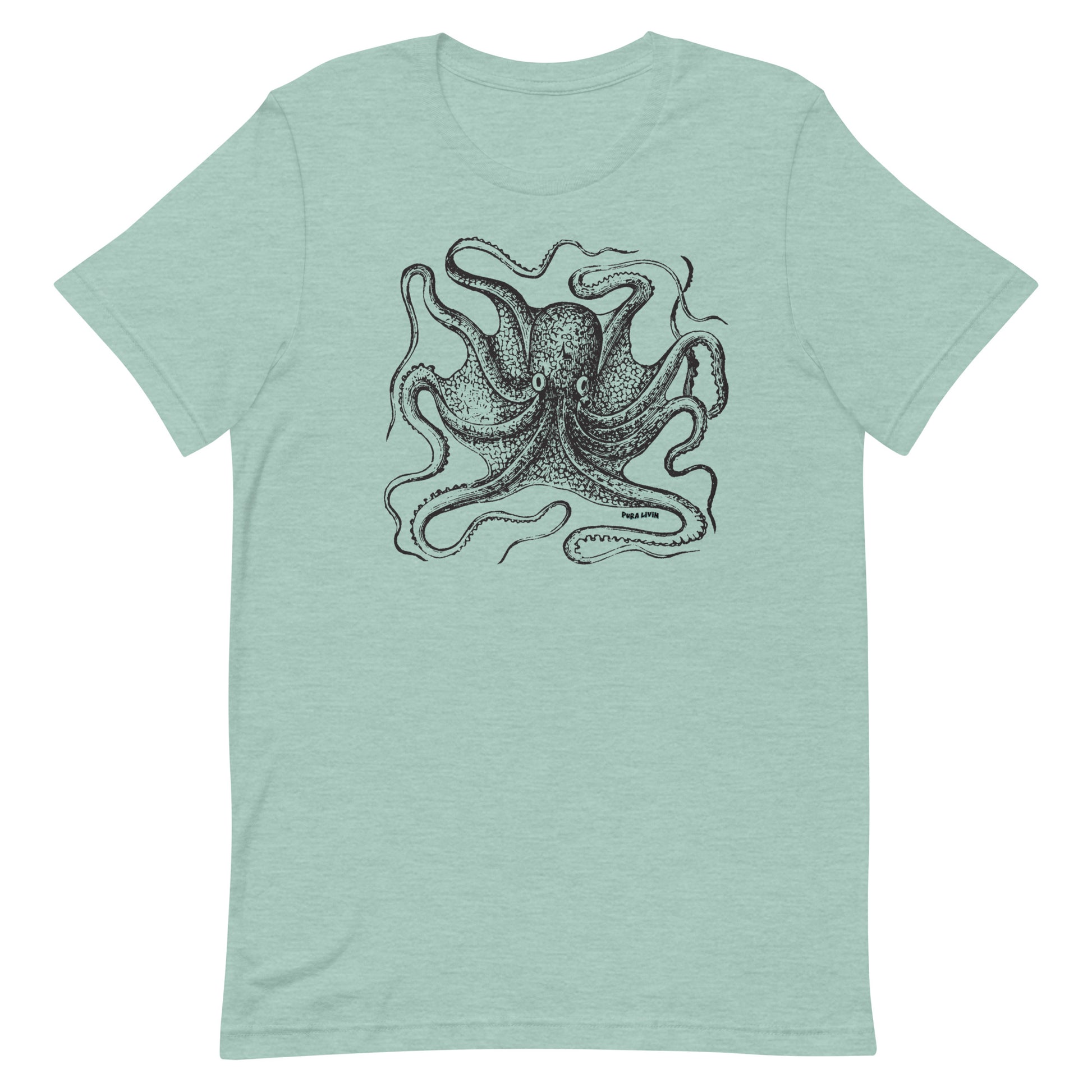Featuring a vintage drawing of octopus tentacles, it adds a unique and artistic element to your wardrobe. This tee serves as a symbol of your love for nature, adventure, and embracing a sustainable lifestyle.