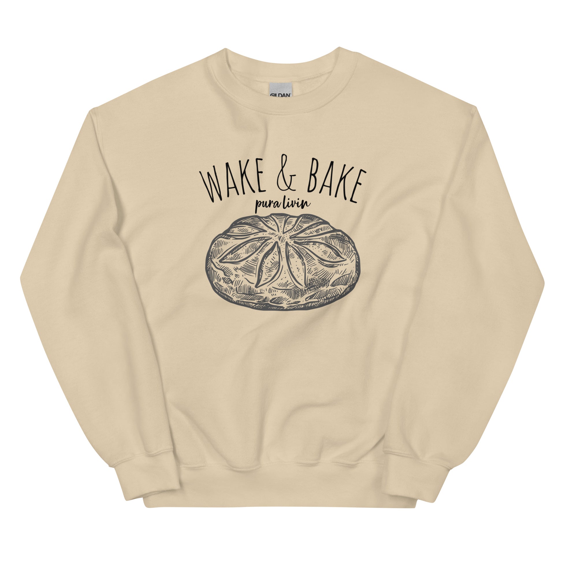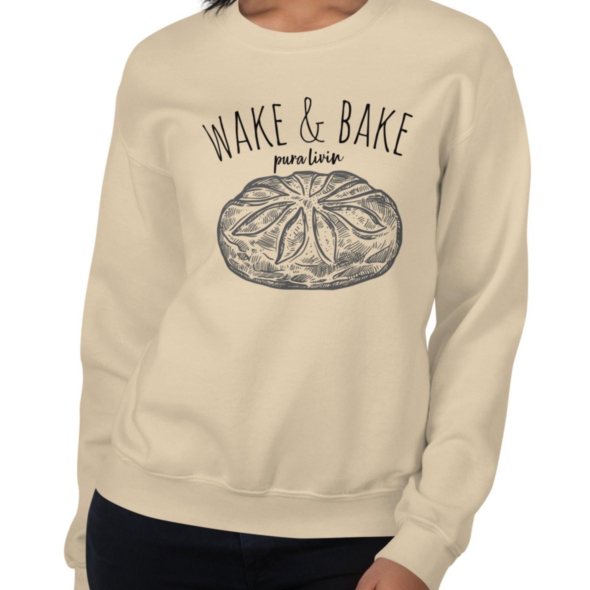 Stay snug and stylish with our "Wake & Bake" Crew Neck – because every day is a baking adventure when you're Pura Livin!