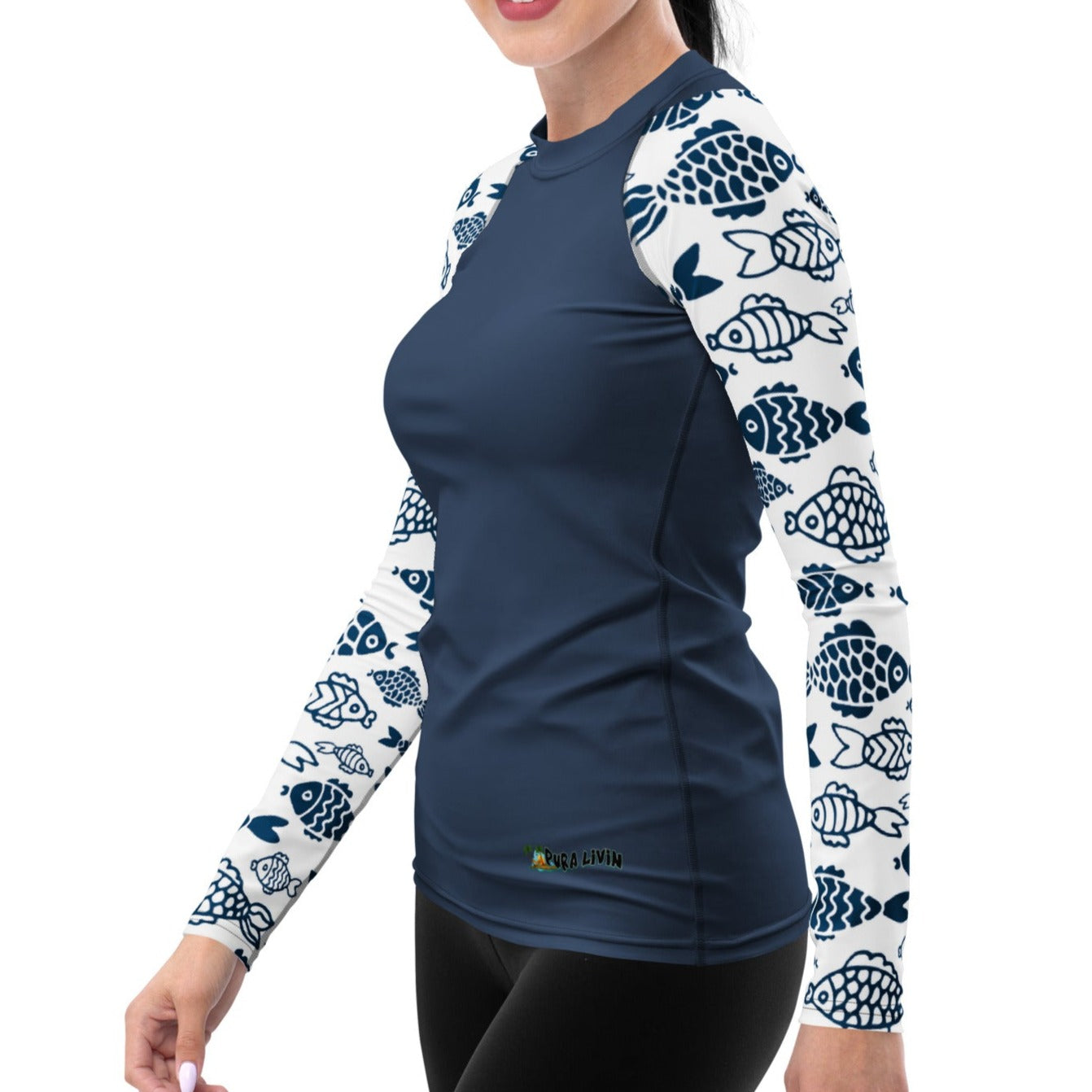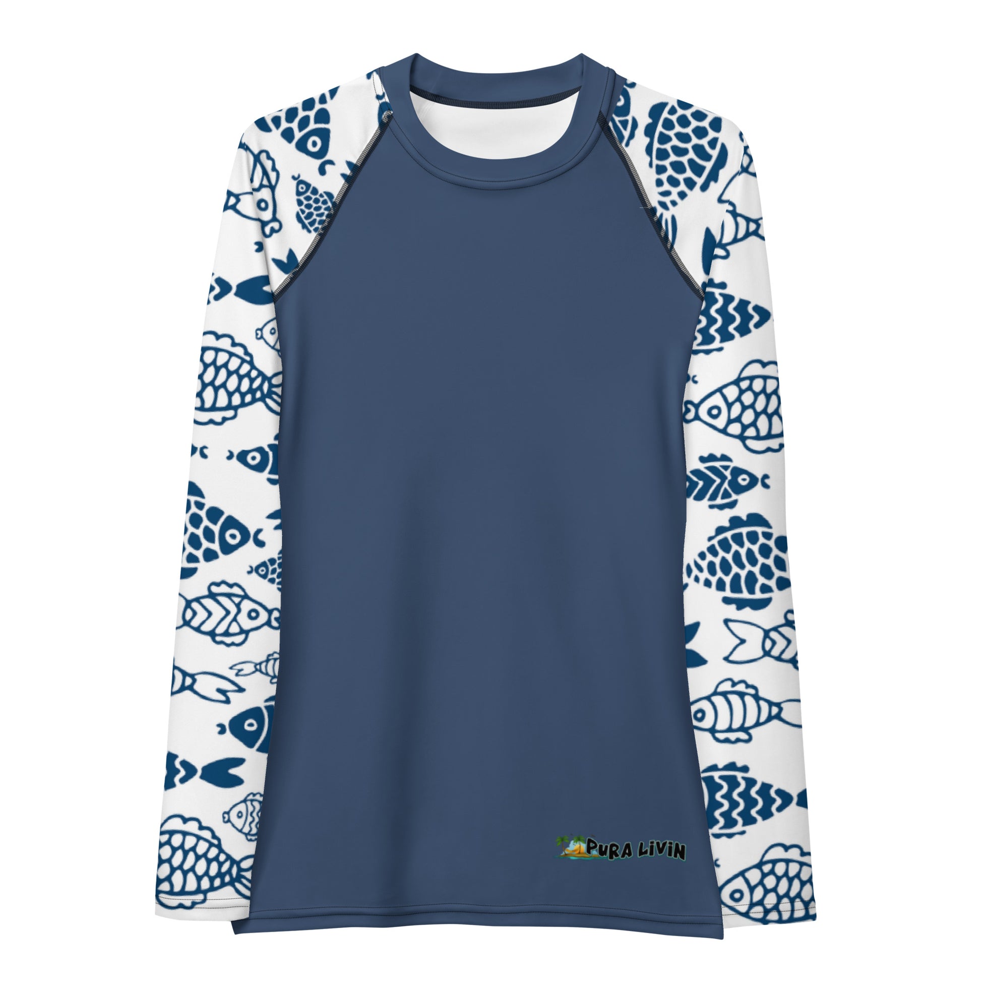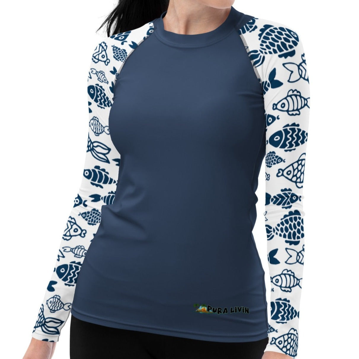 Get ready for the ultimate beach day with a new Pura Livin rash guard. Hand sewn from a soft, four-way stretch fabric with a fitted design, you'll be comfortable no matter how wild the waves get. Whether you're exploring the coral reef, diving for treasures, surfing, kayaking, paddle-boarding, or lounging on the beach, this marine inspired rash guard will have you covered. Its UPF 50+ protection guarantees optimal sun safety while you enjoy your day outdoors. Plus, its quick dry fabric will take you from the reef to the beach with no fuss.
