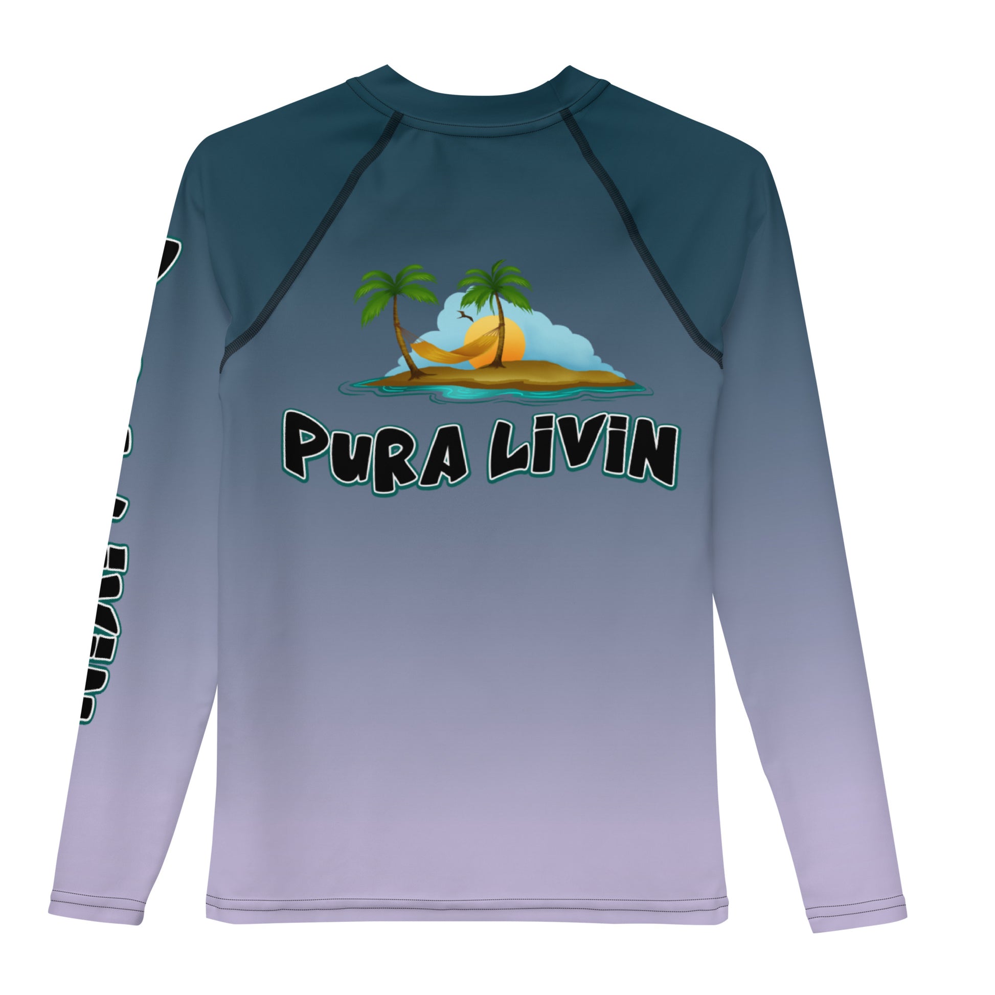 Join the Pura Livin community, prioritize your child's well-being, and let them make a splash with the Tie-Dye Fitted Youth Rash Guard SPF 50+ with Pura Livin / Jupiter Logo. Embrace sun-safe fun and the Pura Livin spirit in the water.